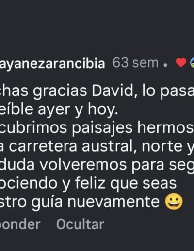 Somos Patagonia Verde Tours, una empresa de turismo local fundada por David Vega Martínez, nacido y criado en la Región de Aysén. Nuestra historia comienza desde la experiencia real de vivir la Patagonia como un estilo de vida, recorriendo sus caminos, montañas y paisajes desde temprana edad. Hoy transformamos esa pasión en tours en la Patagonia diseñados con conocimiento del territorio, cercanía y un profundo respeto por la naturaleza.