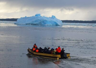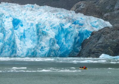 El punto culminante de la excursión es el ingreso al Parque Nacional Laguna San Rafael, donde contemplaremos de cerca la inmensa pared de hielo del Glaciar San Rafael, declarado Reserva de la Biósfera por la UNESCO. Aquí tendrás la posibilidad de acercarte aún más en un paseo en bote zodiac, para sentir la energía del glaciar y observar de primera mano sus tonalidades azules y formas cambiantes. También tendrás la oportunidad de observar la fauna marina de la región, entre ellos lobos marinos, aves patagónicas y, con un poco de suerte, delfines y ballenas que hacen aún más mágico el viaje.